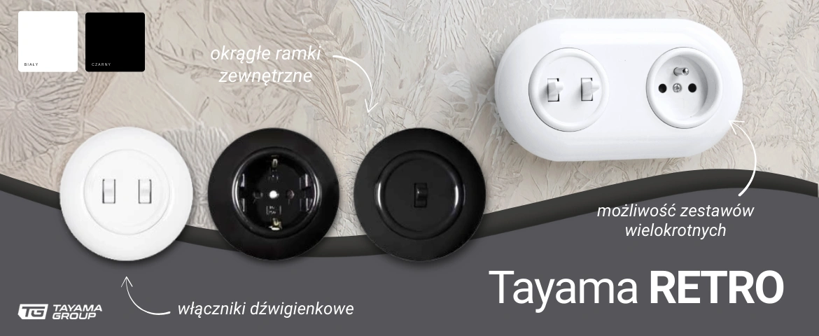 - TG Retro – klasyczne, okrągłe włączniki i gniazda w stylu vintage.