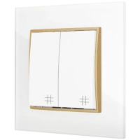 Dwa włączniki podwójne z ramką kwadratową efekt szkła seria ICON kolor biały/złoty