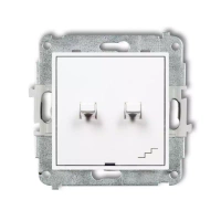 Mechanizm łącznika zwiernego, świecznikowego dwa klawisze, bez piktogramów, wspólne zasilanie w stylu amerykańskim Karlik seria MINI 25MWPUS-44.1 kolor biały mat