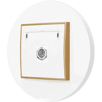 Gniazdo rtv-sat z ramką okrągłą seria MINI kolor biały mat/złoty