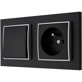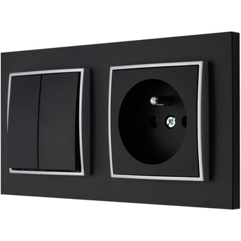 Włącznik z gniazdkiem podwójnym kolor czarny mat/srebrny 10