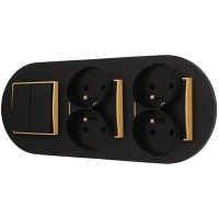 Włącznik podwójny i dwa gniazda podwójne z ramką okrągłą seria MINI kolor czarny złoty