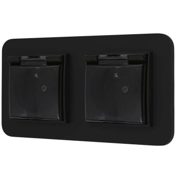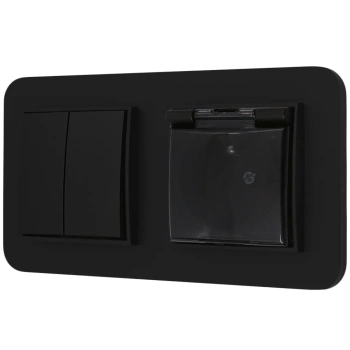 Włącznik podwójny i dwa gniazda hermetyczne z ramką zaokrągloną seria MINI kolor czarny