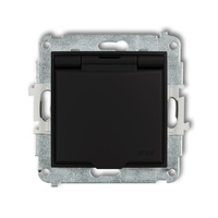 Mechanizm gniazda bryzgoszczelnego z uziemieniem 2P+Z klapka czarny mat, przesłony torów prądowych Karlik seria MINI 12MGPB-1zp kolor czarny mat