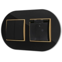 Włącznik podwójny z ramką zaokrągloną efekt szkła seria ICON kolor czarny/złoty