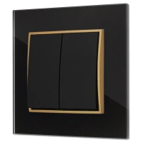 Włącznik podwójny z ramką kwadratową efekt szkła seria ICON kolor czarny/złoty
