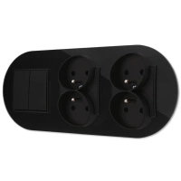 Gniazdo podwójne z ramką zaokrągloną efekt szkła seria ICON kolor czarny