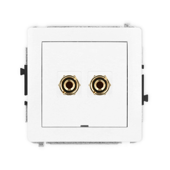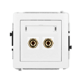 Mechanizm gniazda głośnikowego pojedynczego, bez pola opisowego typu banan - czerwony i czarny, pozłacany, 4 mm2, skręcany Karlik seria DECO 25DGGBO-4 kolor biały mat