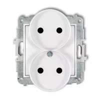 Mechanizm gniazda podwójnego do ramki z uziemieniem 2x2P+Z bez przesłon torów prądowych Karlik seria MINI 25MGPR-2z kolor biały mat