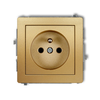Mechanizm gniazda pojedynczego z uziemieniem SCHUKO 2P+Z z przesłonami torów Karlik seria DECO 29DGP-1sp kolor złoty