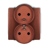 Mechanizm gniazda podwójnego do ramki DECO Soft z uziemieniem 2x2P+Z z przesłonami torów Karlik seria DECO 9DGPRSO-2zp kolor brązowy metalik