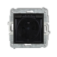 ( ilość produktów: 270 )Mechanizm gniazda pojedynczego z uziemieniem SCHUKO 2P+Z z przesłonami torów Karlik seria ICON 12IGP-1sp kolor czarny mat