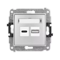 Mechanizm ładowarki USB podwójnej USB C + USB A, 20W max. Karlik seria ICON 7ICUSB-8 kolor srebrny metalik