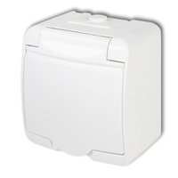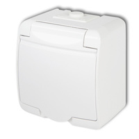 Gniazdo pojedyncze z uziemieniem SCHUKO 2P+Z klapka biała; bez przesłon Karlik seria JUNIOR GHE-1s kolor biały