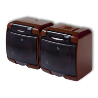Gniazdo podwójne z uziemieniem SCHUKO 2x2P+Z klapka dymna; bez przesłon Karlik seria JUNIOR 4GHE-2sd kolor brązowy
