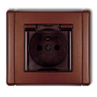 Gniazdo bryzgoszczelne z uziemieniem SCHUKO 2P+Z klapka dymna, przesłony torów prądowych Karlik seria FLEXI 9FGPB-1sdp kolor brązowy metalik