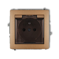 Mechanizm gniazda bryzgoszczelnego z uziemieniem 2P+Z klapka dymna, przesłony torów prądowych Karlik seria DECO 8DGPB-1zdp kolor złoty metalik