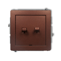 Mechanizm gniazda podwójnego do ramki bez uziemienia 2x2P z przesłonami torów Karlik seria DECO 9DGPR-2p kolor brązowy metalik