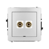 Mechanizm gniazda głośnikowego pojedynczego, bez pola opisowego typu banan - czerwony i czarny, pozłacany, 4 mm2, skręcany Karlik seria DECO 7DGGBO-4 kolor srebrny metalik