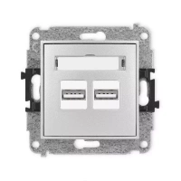 Mechanizm ładowarki USB podwójnej 2xUSB A, 15,5W max., 5V, 3.1A Karlik seria MINI 7MCUSB-6 kolor srebrny metalik