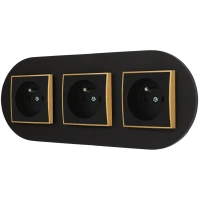 Trzy gniazda podwójne z ramką okrągłą seria MINI kolor czarny złoty