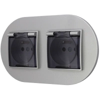 Włącznik podwójny i dwa gniazda hermetyczne z ramką okrągłą seria MINI kolor srebrny