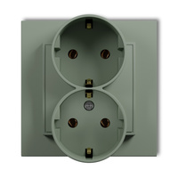 Gniazdo podwójne z uziemieniem SCHUKO 2x2P+Z z przesłonami torów Karlik seria MINI 61MGP-2sp kolor szałwiowy