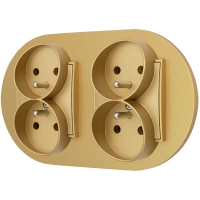 Włącznik podwójny i dwa gniazda pojedyncze z ramką okrągłą seria MINI kolor złoty