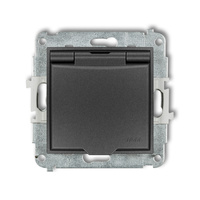 Mechanizm gniazda bryzgoszczelnego z uziemieniem 2P+Z klapka grafitowa, przesłony torów prądowych Karlik seria ICON 11IGPB-1zp kolor grafitowy