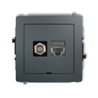 ( ilość produktów: 14838 )Mechanizm gniazda antenowego poj. typu F SAT + gniazda komp. poj. 1xRJ45, kat. 6 ekranowany, 8-stykowy, bez pola opisowego Karlik seria DECO 28DGFKBO-5 kolor grafitowy mat