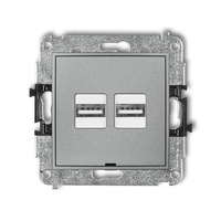 Mechanizm ładowarki USB podwójnej 2xUSB A, 15,5W max., 5V, 3.1A, bez pola opisowego Karlik seria ICON 7ICUSBBO-6 kolor srebrny metalik