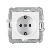 Mechanizm gniazda pojedynczego z uziemieniem 2P+Z bez przesłon torów prądowych Karlik seria MINI 25MGP-1z kolor biały mat