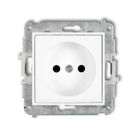 Mechanizm gniazda pojedynczego bez uziemienia 2P z przesłonami torów Karlik seria MINI 25MGP-1p kolor biały mat