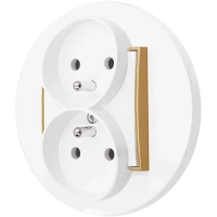 Dwa gniazda podwójne z ramką okrągłą seria MINI kolor biały mat/złoty