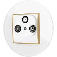 Gniazdo rtv-sat z ramką okrągłą efekt szkła seria ICON kolor biały/złoty