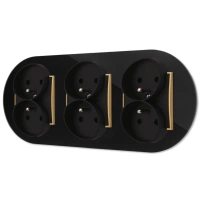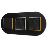 Trzy gniazda podwójne z ramką okrągłą efekt szkła seria ICON kolor czarny/złoty