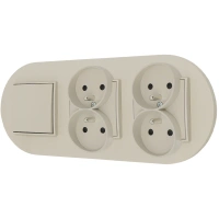 Włącznik pojedynczy i dwa gniazda podwójne z ramką okrągłą seria MINI kolor taupe