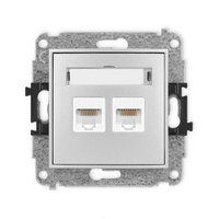 Mechanizm gniazda komputerowego podwójnego 2xRJ45, kat. 5e, 8-stykowy, bez pola opisowego Karlik seria ICON 7IGKBO-2 kolor srebrny metalik