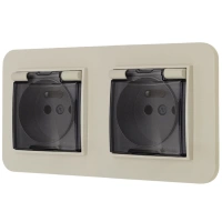 Włącznik podwójny i dwa gniazda hermetyczne z ramką zaokrągloną seria MINI kolor taupe