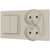 Włącznik podwójny i dwa gniazda pojedyncze z ramką prostą seria MINI kolor taupe