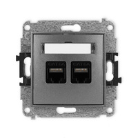 Mechanizm gniazda komputerowego podwójnego 2xRJ45, kat. 8, ekranowany, 8-stykowy Karlik seria ICON 11IGK-12 kolor grafitowy