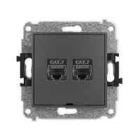 Mechanizm gniazda komputerowego podwójnego 2xRJ45, kat. 7, ekranowany, 8-stykowy, bez pola opisowego Karlik seria ICON 28IGKBO-10 kolor grafitowy mat