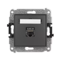 Mechanizm gniazda komputerowego pojedynczego 1xRJ45, kat. 8, ekranowany, 8-stykowy, bez pola opisowego Karlik seria ICON 28IGKBO-11 kolor grafitowy mat