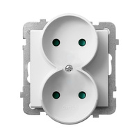Gniazdo podwójne z uziemieniem z przesłonami torów prądowych, moduł bez ramki seria SONATA kolor Biały symbol GP-2RRZP/m/00