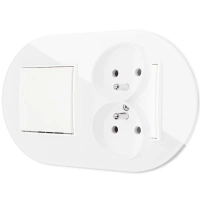 Włącznik podwójny z ramką zaokrągloną efekt szkła seria ICON kolor biały