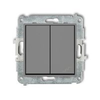 Mechanizm łącznika jednobiegunowego ze schodowym w stylu amerykańskim dwa klawisze bez piktogramów,wspólne zasilanie Karlik seria ICON 27IWPUS-10.11 kolor szary mat