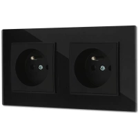 Dwa gniazda podwójne z ramką kwadratową efekt szkła seria ICON kolor czarny