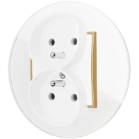 Gniazdo podwójne z ramką okrągłą efekt szkła seria ICON kolor biały/złoty