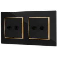 Dwa gniazda podwójne z ramką okrągłą efekt szkła seria ICON kolor grafitowy mat