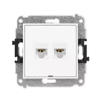Mechanizm gniazda komputerowego podwójnego 2xRJ45, kat. 8, ekranowany, 8-stykowy Karlik seria MINI 25MGK-12 kolor biały mat